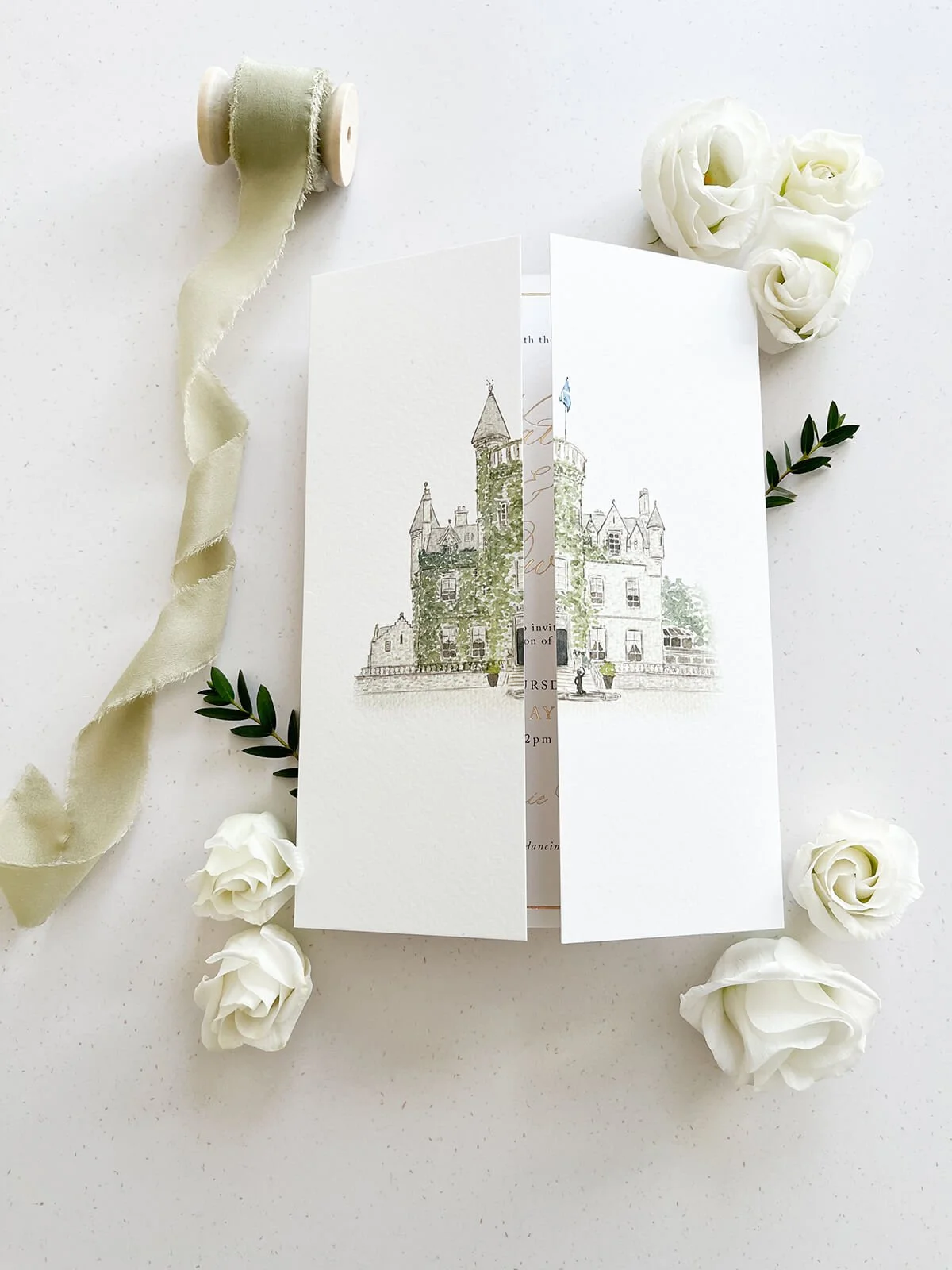 Whether you’re looking for a full colour design, or something more delicate and subtle, I can help bring your ideas to life. And whether it be a watercolour venue illustration, a custom crest or a romantic floral design, all of my illustrations are created by hand in house before being scanned, ready to be edited and added to your design digitally.